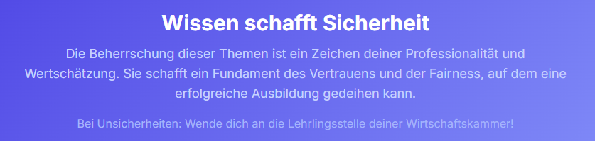 Schlussfolgerung: Wissen schafft Sicherheit – für dich und deinen Lehrling
