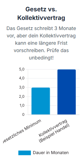 Hier lauert jedoch eine der häufigsten und teuersten Fallen für Ausbildungsbetriebe: Der für dich geltende Kollektivvertrag kann eine längere Behaltefrist vorschreiben. Dieser Grundsatz ist ein zentrales Element des österreichischen Arbeitsrechts: Der Kollektivvertrag kann für Arbeitnehmer immer nur günstigere (also in diesem Fall längere) Regelungen vorsehen als das Gesetz.