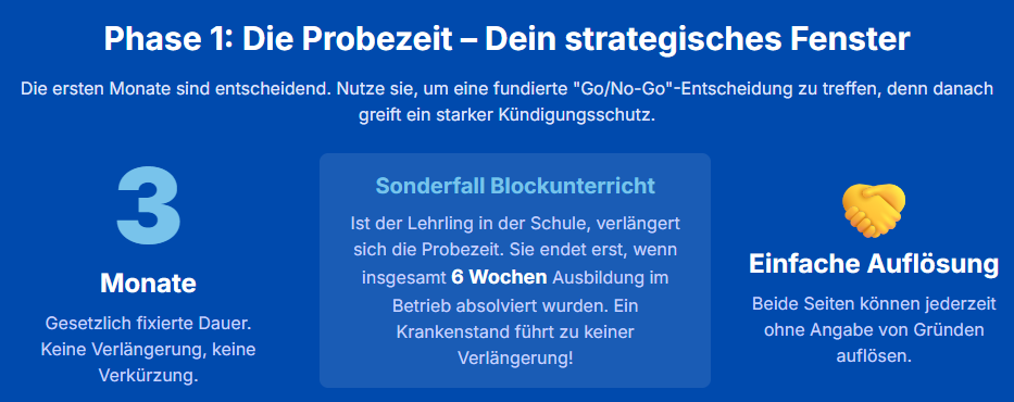 Die ersten drei Monate eines jeden Lehrverhältnisses sind gesetzlich als Probezeit definiert. Diese Phase ist nicht verhandelbar; sie ist ein zwingender Bestandteil des Berufsausbildungsgesetzes.