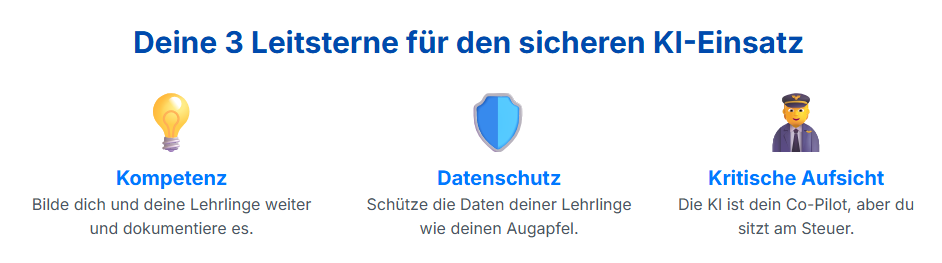 Wenn du deine Reise in die KI-gestützte Ausbildung planst, orientiere dich an drei Leitsternen, die dich sicher ans Ziel bringen:
