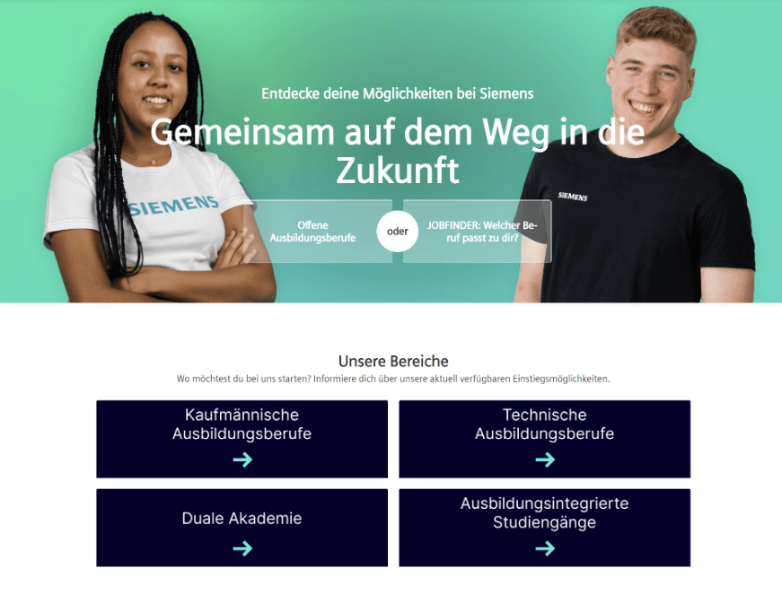 Dieser Ansatz unterstreicht den hohen Stellenwert und die umfassende Natur der beruflichen Ausbildung bei Siemens. Durch die Verwendung des Begriffs "Ausbildung" wird signalisiert, dass es sich um eine ganzheitliche, qualifizierte und zukunftsorientierte Vorbereitung auf den Beruf handelt. Dies hebt nicht nur den professionellen Charakter der Ausbildung hervor, sondern stärkt auch die Wahrnehmung und das Ansehen der Ausbildungsberufe in der Gesellschaft. Gleichzeitig öffnet es Türen für eine breitere Anerkennung und Wertschätzung der durchlaufenen Ausbildungsprogramme, was den Auszubildenden zusätzliche Motivation und Perspektiven bietet. Durch diese bewusste Wortwahl setzt Siemens ein Zeichen für die Modernisierung und Aufwertung traditioneller Lehrberufe.