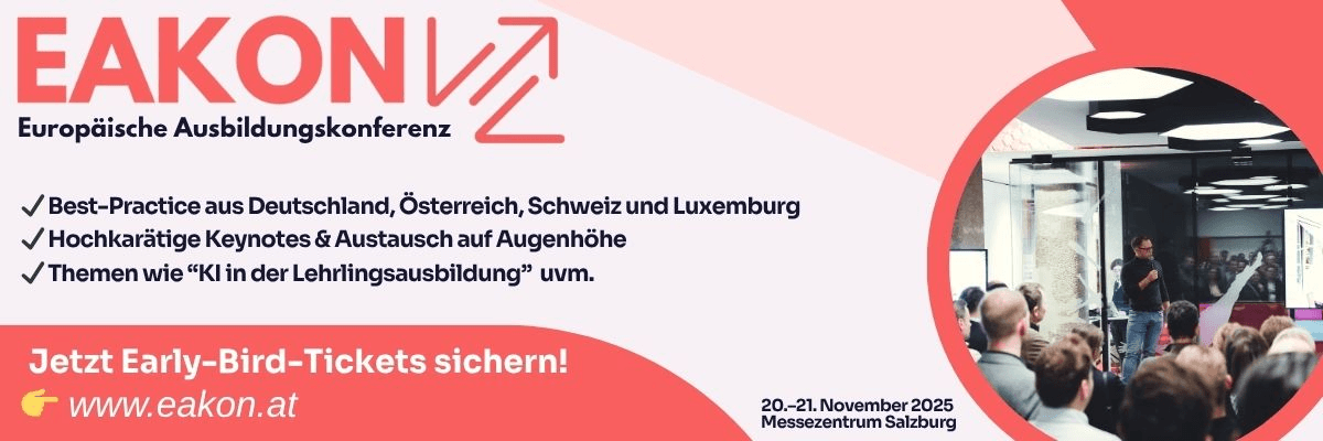 Die EAKON ist das neue Highlight für alle, die Ausbildung mitgestalten - praxisnah, international und am Puls der Zeit. Am 20. und 21. November verwandelt sich das Messezentrum Salzburg in einen Treffpunkt für Ausbildungsprofis aus dem gesamten deutschsprachigen Raum.