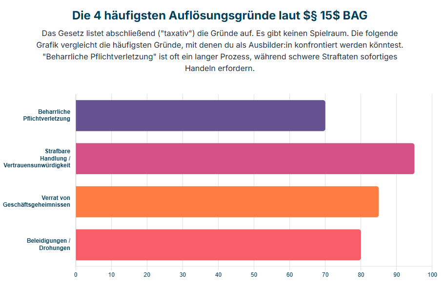 Die häufigsten und wichtigsten Auflösungsgründe aus $§ 15$ Abs. 3 BAG für dich als Ausbilder:in sind: