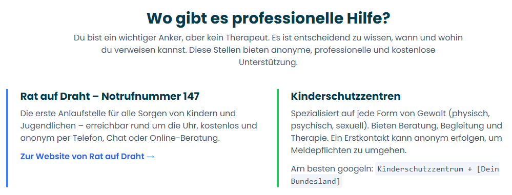 In dieser Phase tritt die „Wertschätzung“ (Validation), die im Webinar so stark betont wird, in den Vordergrund.Es ist der bewusste Gegenentwurf zu den gut gemeinten, aber oft verletzenden Beschwichtigungen, die junge Menschen so oft hören: