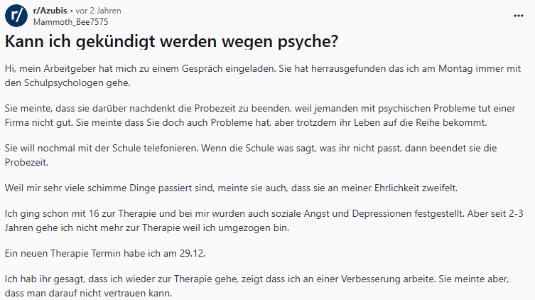 Manchmal begegnet man im Arbeitsleben einer erschütternden Realität, die zeigt, wie weit der Weg zu einem verständnisvollen und inklusiven Umgang mit psychischer Gesundheit noch ist. Die folgende Schilderung offenbart eine Situation, in der die Offenheit eines jungen Menschen bezüglich seiner psychischen Unterstützung auf tiefes Misstrauen und Unverständnis stößt. Es ist ein beunruhigendes Beispiel dafür, wie schnell Vorurteile und mangelndes Einfühlungsvermögen die Zukunft eines Lehrlings aufs Spiel setzen können.